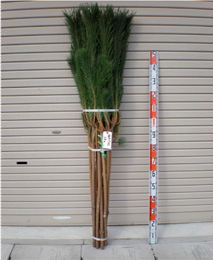 | 説明 | 若山とは違う過程を経て栽培された松。 葉は短く、外観も若松は比較的上に向かって枝が伸びているのに対し、こちらは横に枝が何段にも伸びていて、葉も短いのが特徴です。 長い年月を経て作られているものが多い為一本単価は高めになります。 |